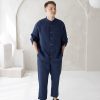 Mens linen loungewear two piece set / Custom ecru off white linen pant and shirt button up suit / Mens short sleeve shirt & pant set